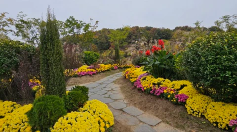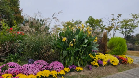 국화와 갈대가 동문과 서문 입구 곳곳에 심어져 있습니다.