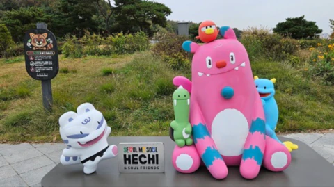 이번엔 서울시 마스코트 해치도 설치되어 있네요. 이곳은 서울시에서 관리하는 곳입니다. 너구리가 살고 있다는 팻말이 옆에 있는데, 이곳에 살고 있는 고양이는 봤어요.